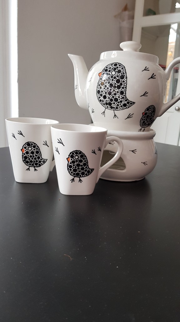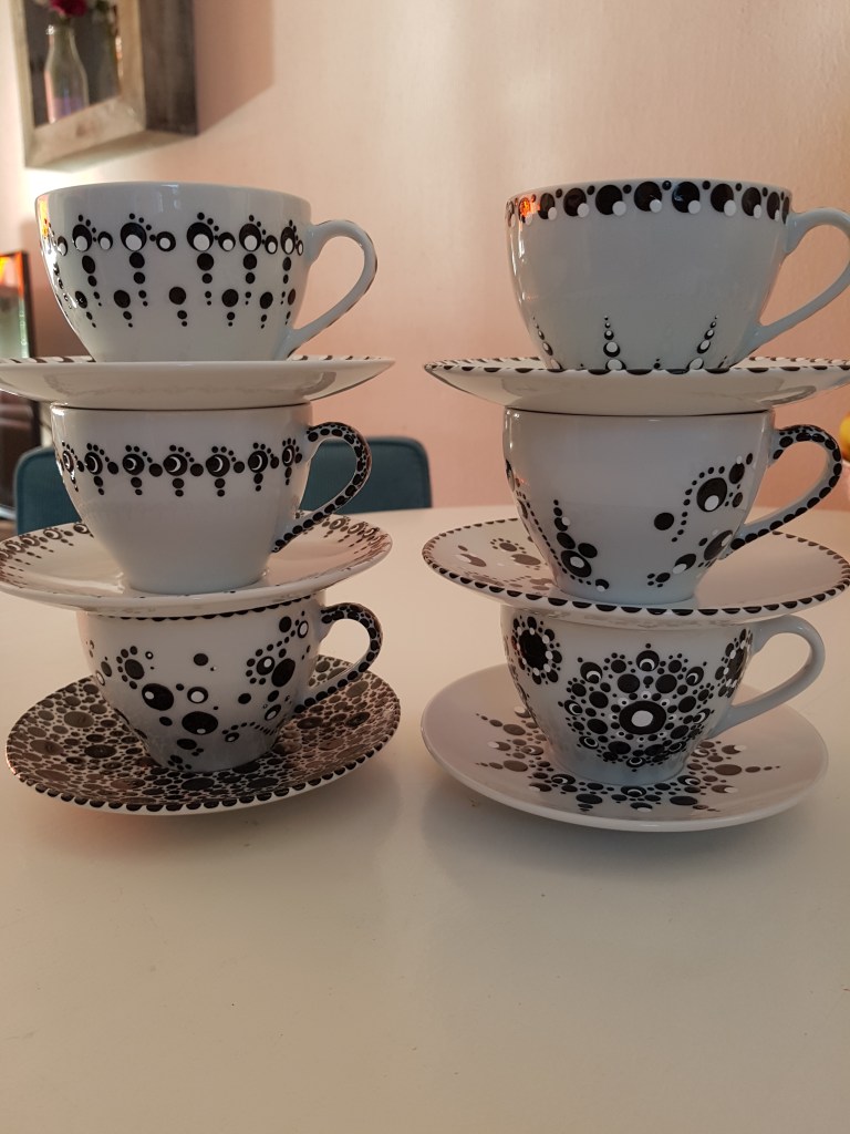 Je krijgt een kant en klaar pakketje met porseleinverf, stokjes en serviesgoed, uiteraard met een duidelijke werkbeschrijving erbij. Deze zijn te verkrijgen voor €12,50 exclusief verzendkosten. Stuur me maar een mailtje als je belangstelling hebt dan stuur ik je zo’n leuk ‘stip het zelf’ pakketje op. (Binnen Zwolle worden ze gratis bezorgd).